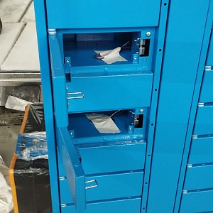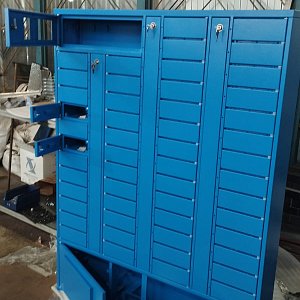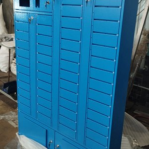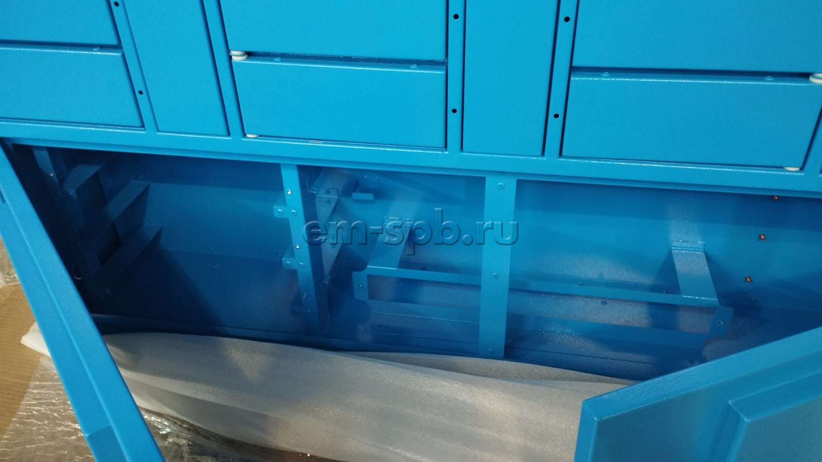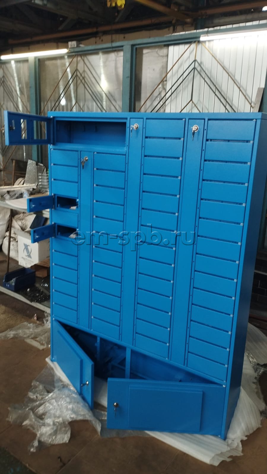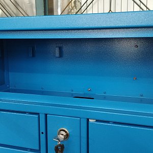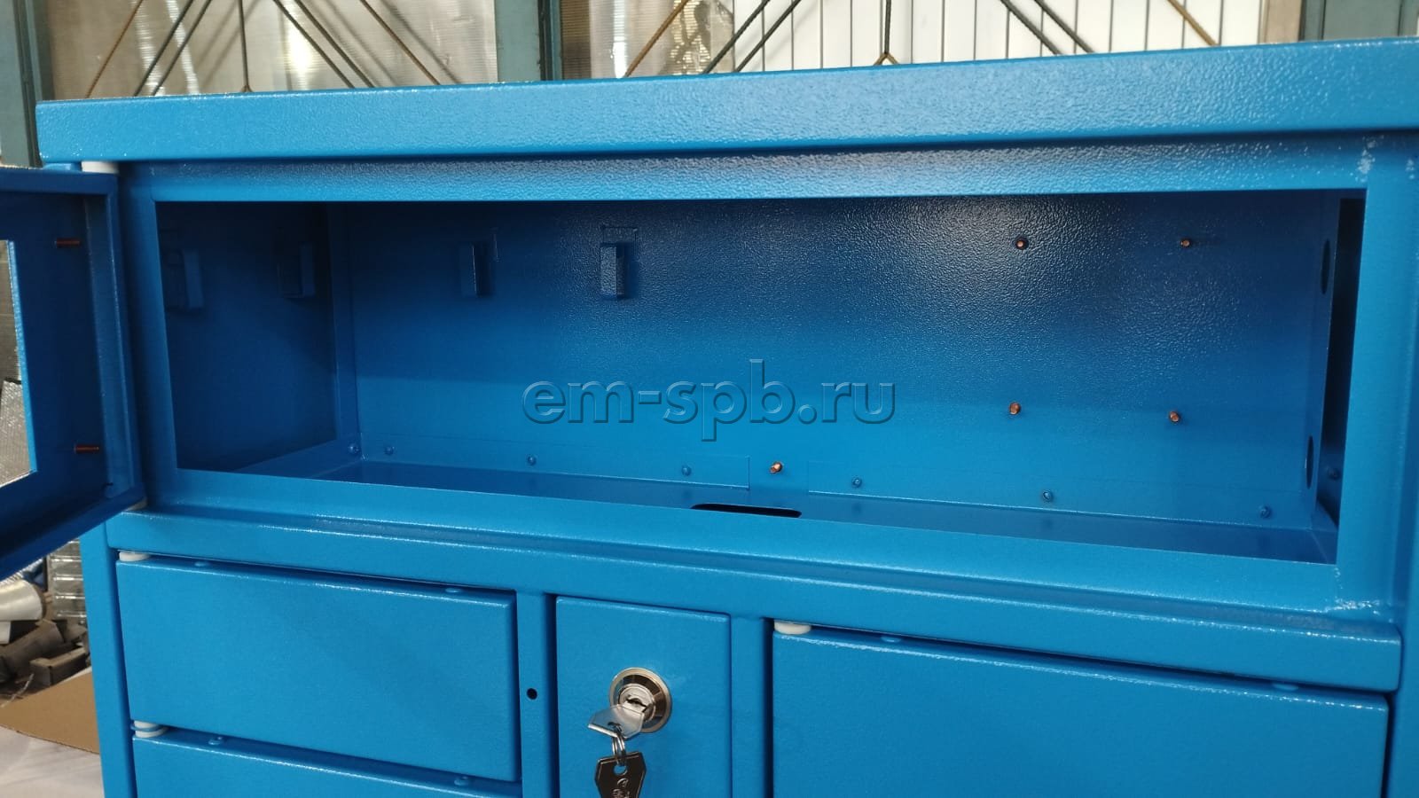 Выполнили проектирование и изготовление постамата в небесно-голубом цвете.